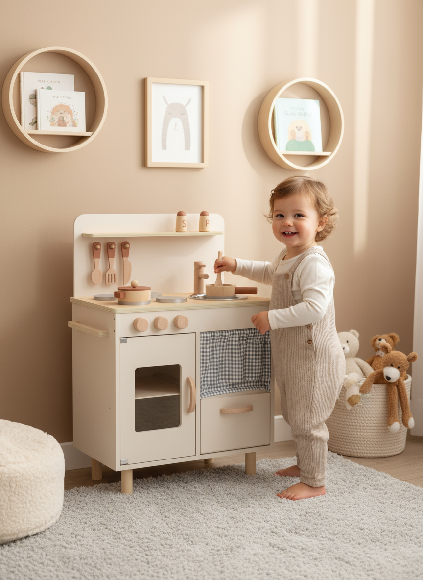 Ta przestronna, drewniana kuchnia dziecięca to kompletne centrum kulinarne, które rozbudzi pasję do gotowania u każdego malucha! Z otwieranym piekarnikiem, funkcjonalnym zlewem i półkami na akcesoria, zapewnia realistyczną zabawę na wiele godzin. Rozwija kreatywność, zdolności manualne i umiejętności społeczne poprzez zabawę.