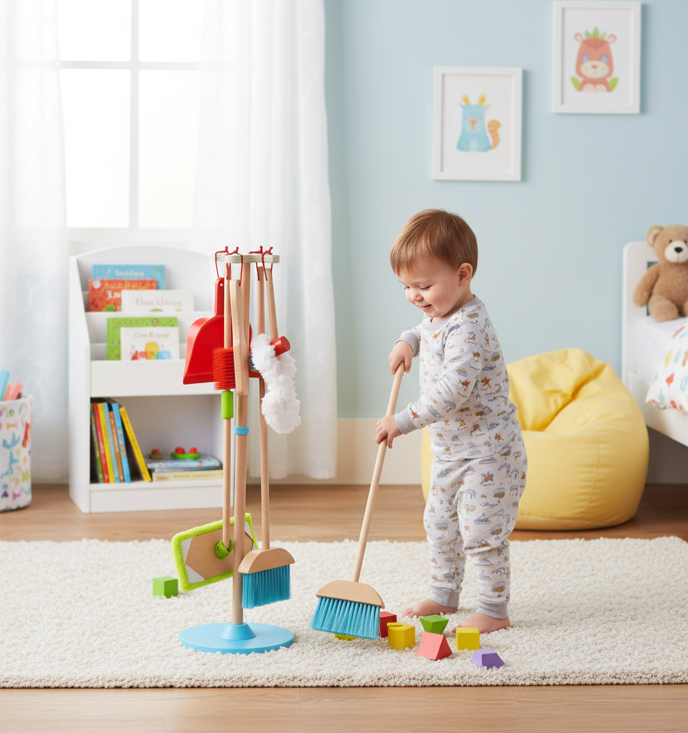 🤝 Naśladowanie i odpowiedzialność: Zabawa w sprzątanie uczy samodzielności, odpowiedzialności i chęci pomagania rodzicom w codziennych obowiązkach.
