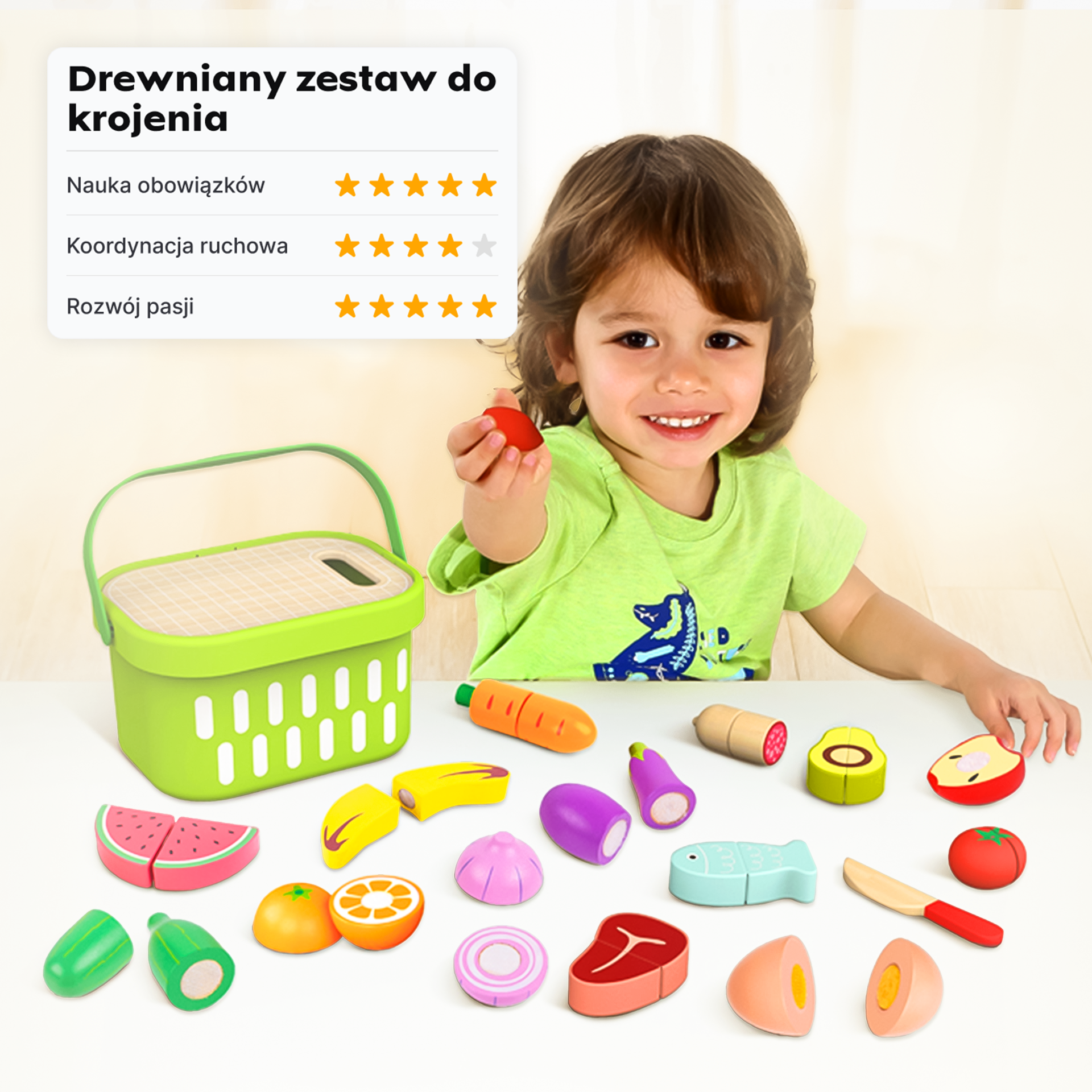 ✋ Rozwój motoryki małej: Krojenie, składanie i manipulowanie produktami znakomicie ćwiczy precyzję chwytu i sprawność małych rączek, przygotowując je do przyszłych wyzwań.