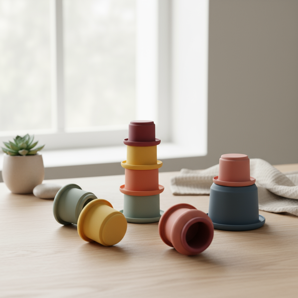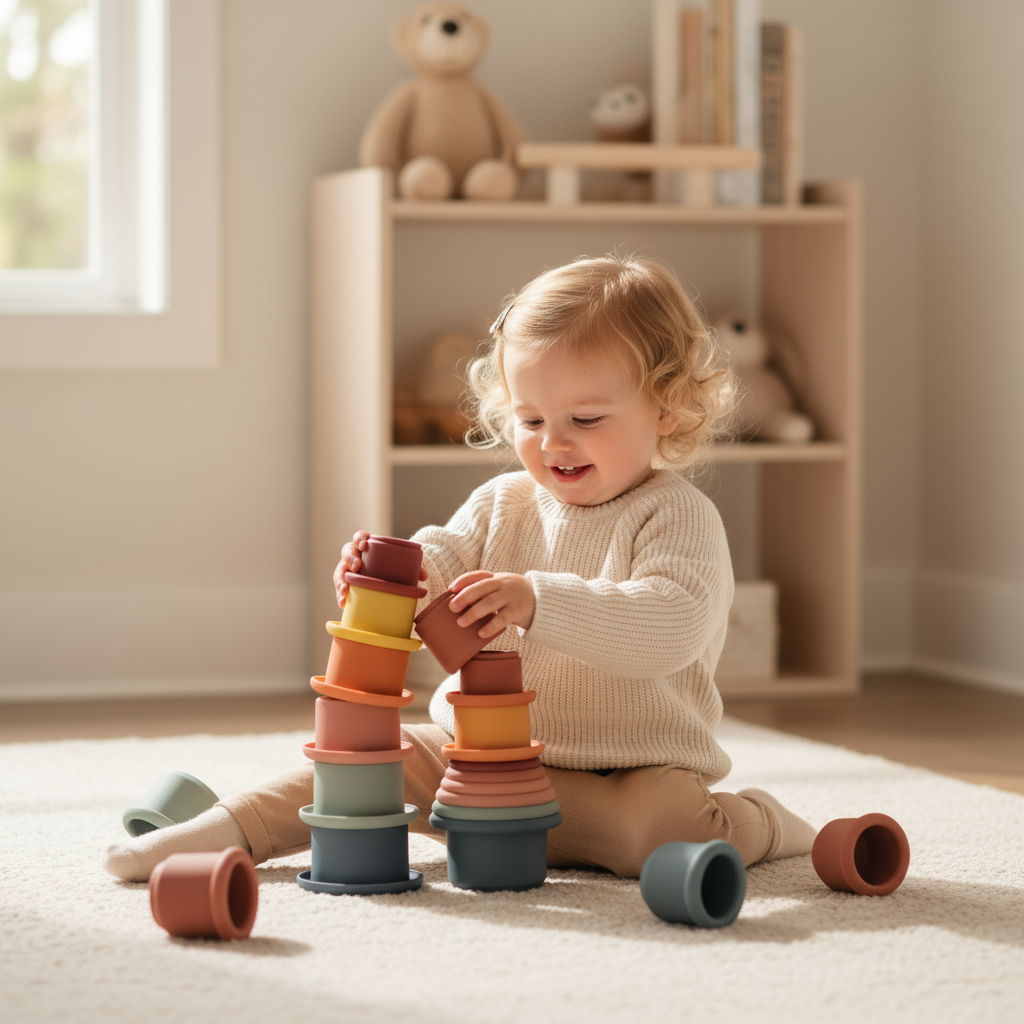 Poznaj pierwsze klocki Twojego dziecka, które rosną razem z nim! Ten zestaw 7 silikonowych kubeczków w ponadczasowych kolorach to znacznie więcej niż zwykła zabawka. To wielofunkcyjne narzędzie do nauki, rozwoju i nieskończonej zabawy – w wannie, na dywanie i w podróży.